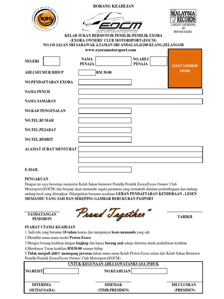 Contoh Borang Keahlian Kelab Kereta